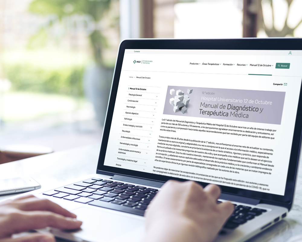 Con más de 38 años de vida, el Manual de Diagnóstico y Terapéutica Médica del Hospital Universitario 12 de Octubre, se ha convertido en un manual de referencia de consulta en el ámbito sanitario, ayudando a mejorar la atención de los pacientes. El manual es el resultado del trabajo de más de 150 autores y 110 asesores especialistas.