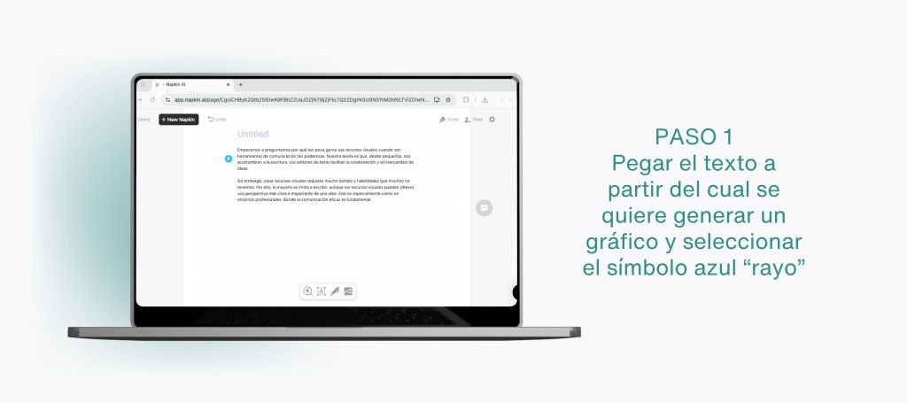Pegue en el recuadro principal el texto o la lista de conceptos a representar y seleccione el símbolo azul en forma de “rayo” para activar la generación automática.