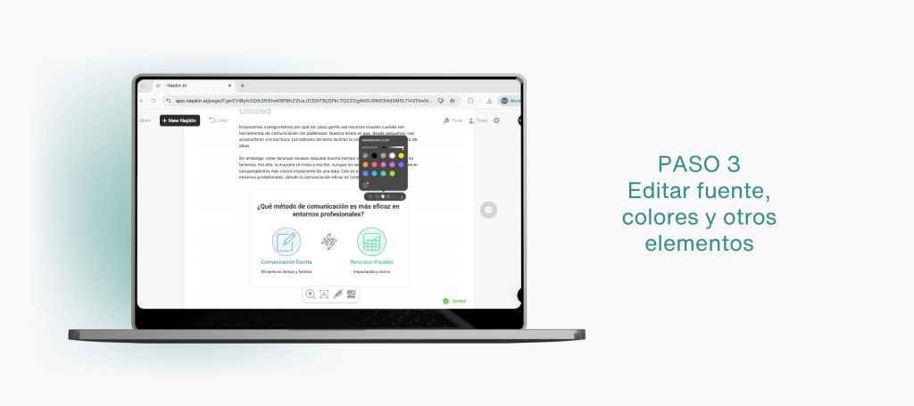 Napkin4: se centra en la simplicidad, ofreciendo la conversión rápida de descripciones escritas en mapas conceptuales y esquemas básicos. Ideal para generar gráficos visuales para presentaciones.