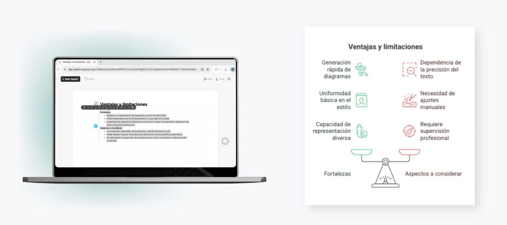 De esta manera, Napkin permite obtener un esquema inicial claro y flexible que el profesional puede perfeccionar con matices y referencias adicionales, manteniendo siempre la responsabilidad sobre la validez y pertinencia del contenido.