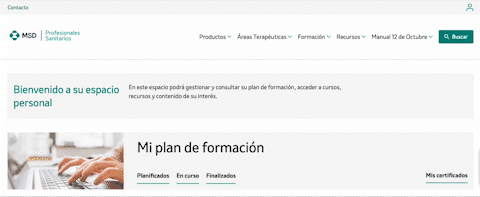 Desde la página principal de MSD Profesionales Sanitarios, una vez se haya registrado, podrá visualizar su “Plan de Formación” de cursos formativos.